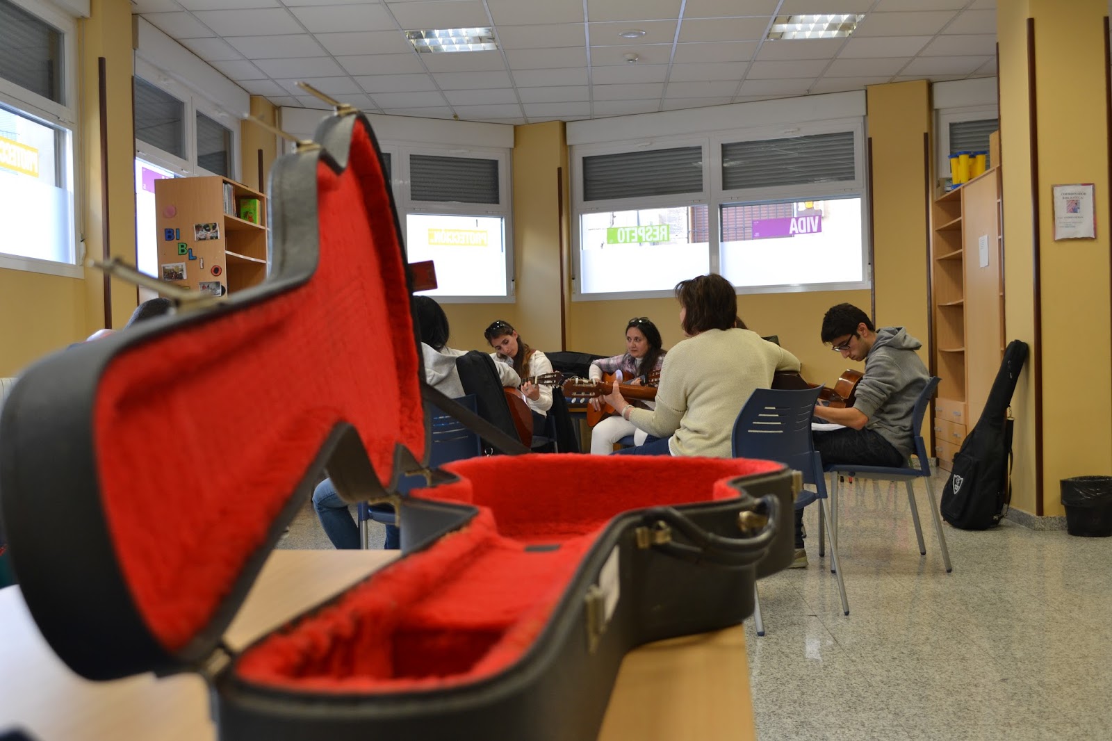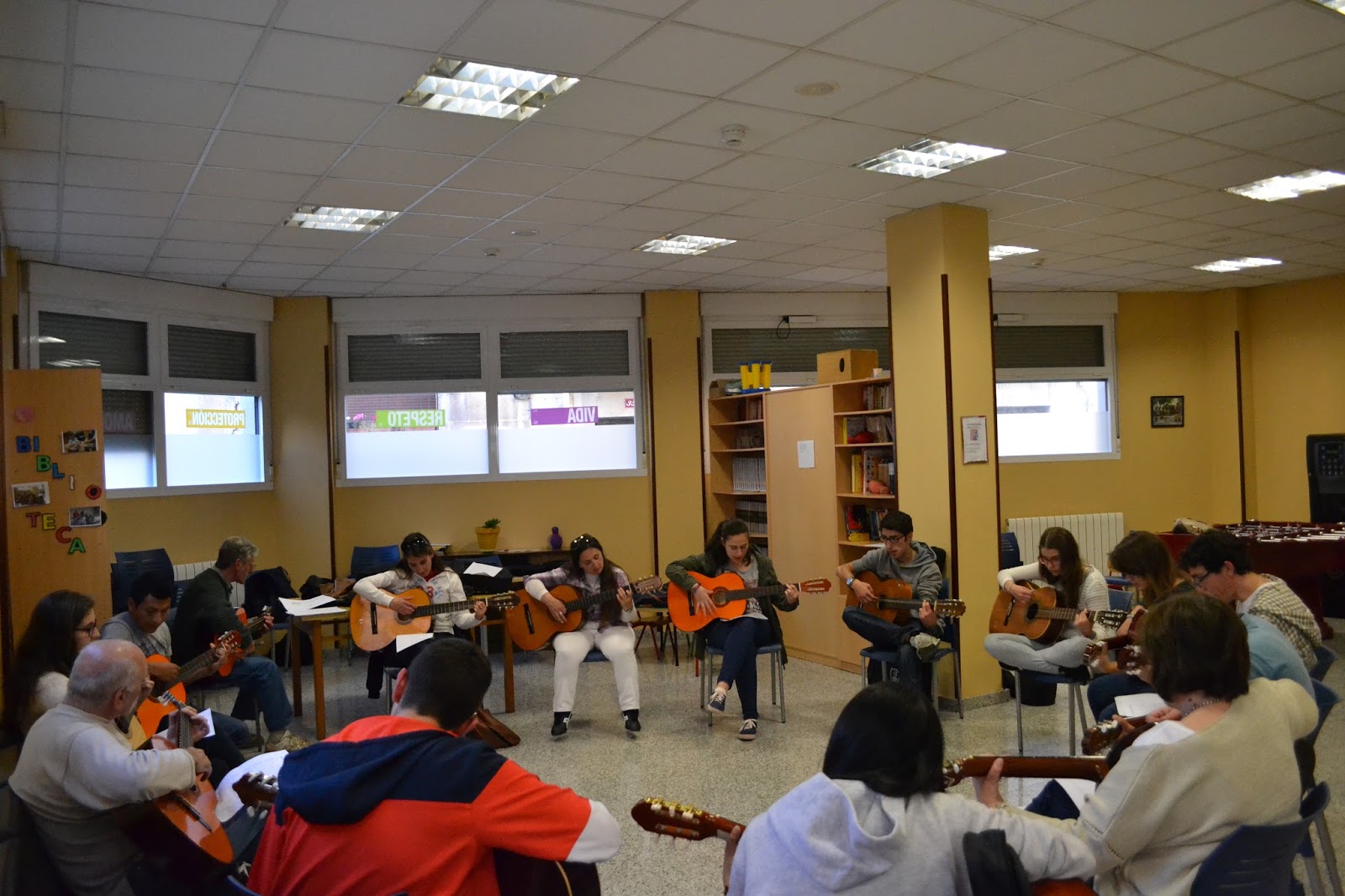 Las guitarras vuelven a sonar todos los lunes en el Centro del Alojamiento Alternativo desde el pasado mes de octubre, lugar donde quedamos todos los lunes de cinco y media a seis y media de la tarde para ir aprendiendo poco a poco entre todas y todos las notas musicales y de amistad que conforman este grupo.